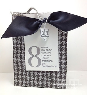 Girl Friday Angie has created a beauty! I just love the rich texture and that big juicy ribbon knot tied onto her bag handle. How sweet is the little dreidel tied on too?